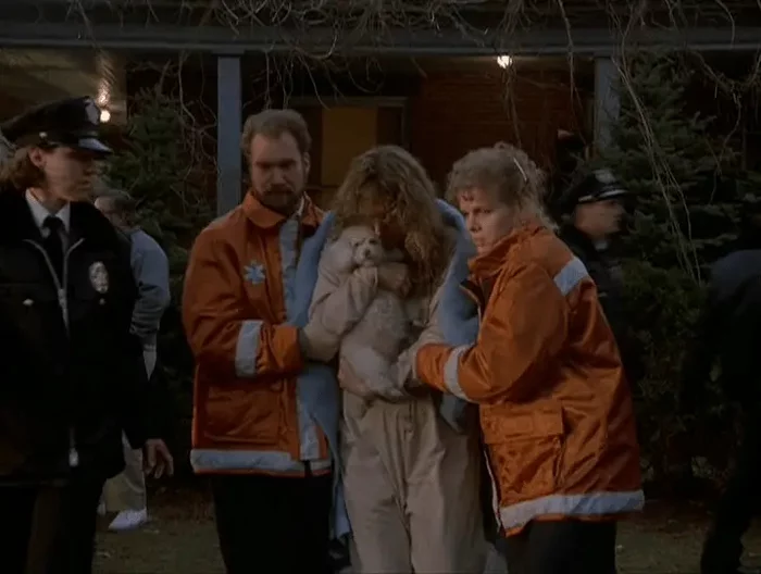 На мой взгляд, пушистая белая собачка, которая находится в руках у спасенной девушки — это как раз образ тех самых овечек из кошмаров Клариссы. Которых Старлинг не смогла спасти в детстве, но которых смогла спасти сейчас.